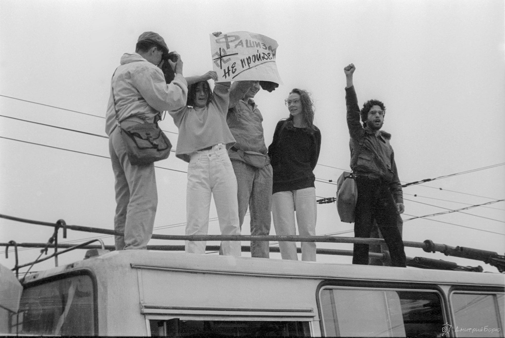 And someone gave me that fashizm ne poletit placard and asked me to hold it. And I’m like, “Sure, I’m going to hold it.” So I’m holding my placard. We stayed there for a long time when things were happening. Next time I saw in the evening, my parents called me, “What are you doing?” Because it turned out that that image was on all the TVs in the world. [laughs] And that’s how I very briefly became the face of this revolution.